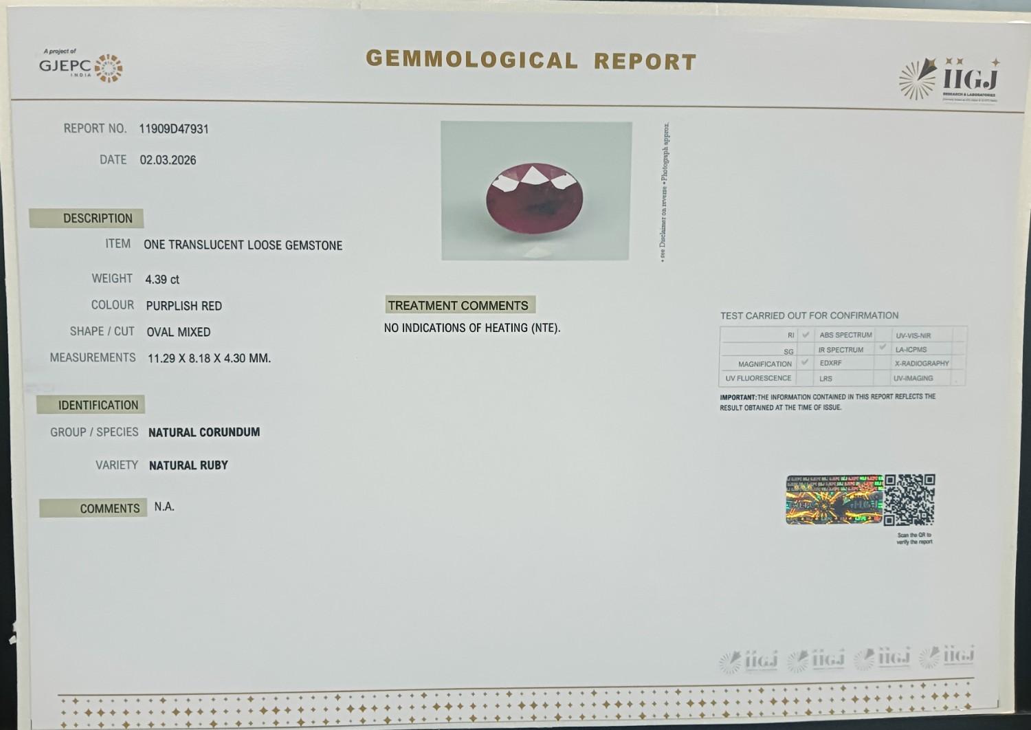 RUBY 4.39 Ct.
