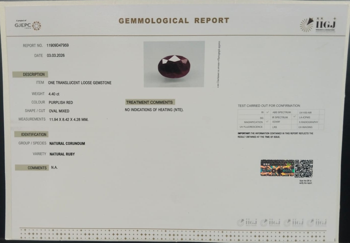 Beautiful 4.4 Cts Natural Ruby (AAA-Mines) sva 4+ Ratti RUBY. Free Horoscope & Free Pundit Ji Astrological Advise / Consultation. Original Natural Lab certified gems by IGI GTL / Birth stones / Large Gem Selection of shree shubh Rashi Ratan Vedic dhan at Gem Mines. May Bhagwan Brahma, Vishnu, Shiv & Universe bless you.