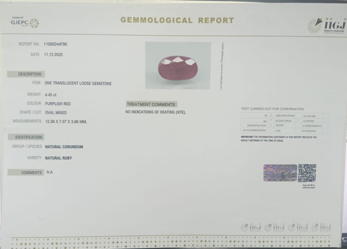 Beautiful 4.45 Cts Natural Ruby (Top+-Mines) sva 4+ Ratti RUBY. Free Horoscope & Free Pundit Ji Astrological Advise / Consultation. Original Natural Lab certified gems by IGI GTL / Birth stones / Large Gem Selection of shree shubh Rashi Ratan Vedic dhan at Gem Mines. May Bhagwan Brahma, Vishnu, Shiv & Universe bless you.