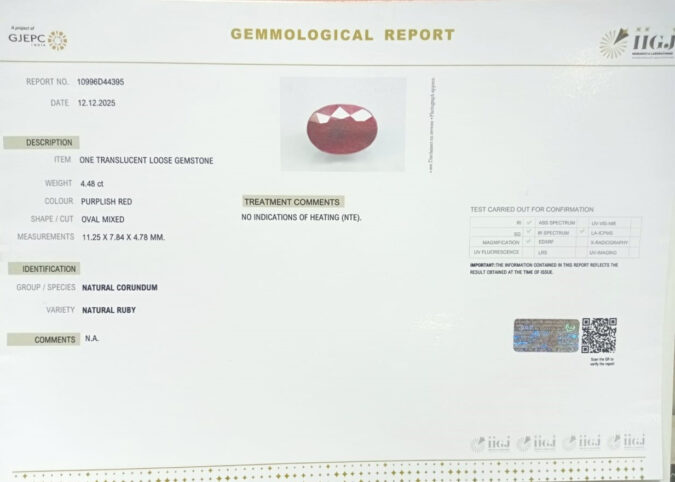 Beautiful 4.48 Cts Natural Ruby (Top-Mines) sva 4+ Ratti RUBY. Free Horoscope & Free Pundit Ji Astrological Advise / Consultation. Original Natural Lab certified gems by IGI GTL / Birth stones / Large Gem Selection of shree shubh Rashi Ratan Vedic dhan at Gem Mines. May Bhagwan Brahma, Vishnu, Shiv & Universe bless you.