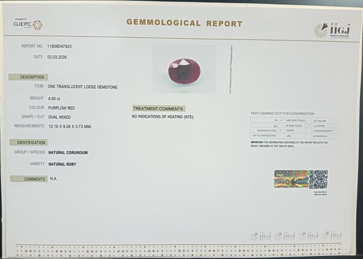 Beautiful 4.5 Cts Natural Ruby (AAA-Mines) sva 5+ Ratti RUBY. Free Horoscope & Free Pundit Ji Astrological Advise / Consultation. Original Natural Lab certified gems by IGI GTL / Birth stones / Large Gem Selection of shree shubh Rashi Ratan Vedic dhan at Gem Mines. May Bhagwan Brahma, Vishnu, Shiv & Universe bless you.