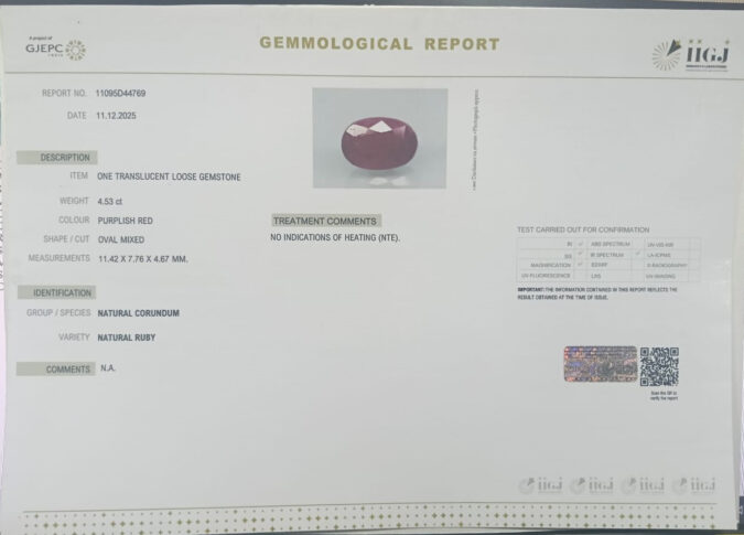 Beautiful 4.53 Cts Natural Ruby (Top+-Mines) sva 5+ Ratti RUBY. Free Horoscope & Free Pundit Ji Astrological Advise / Consultation. Original Natural Lab certified gems by IGI GTL / Birth stones / Large Gem Selection of shree shubh Rashi Ratan Vedic dhan at Gem Mines. May Bhagwan Brahma, Vishnu, Shiv & Universe bless you.