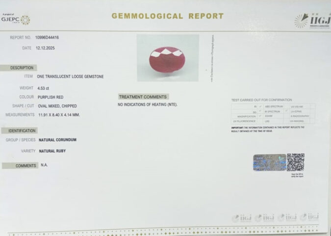 Beautiful 4.53 Cts Natural Ruby (Top-Mines) sva 5+ Ratti RUBY. Free Horoscope & Free Pundit Ji Astrological Advise / Consultation. Original Natural Lab certified gems by IGI GTL / Birth stones / Large Gem Selection of shree shubh Rashi Ratan Vedic dhan at Gem Mines. May Bhagwan Brahma, Vishnu, Shiv & Universe bless you.
