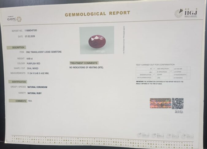 Beautiful 4.69 Cts Natural Ruby (Top-Mines) sva 5+ Ratti RUBY. Free Horoscope & Free Pundit Ji Astrological Advise / Consultation. Original Natural Lab certified gems by IGI GTL / Birth stones / Large Gem Selection of shree shubh Rashi Ratan Vedic dhan at Gem Mines. May Bhagwan Brahma, Vishnu, Shiv & Universe bless you.
