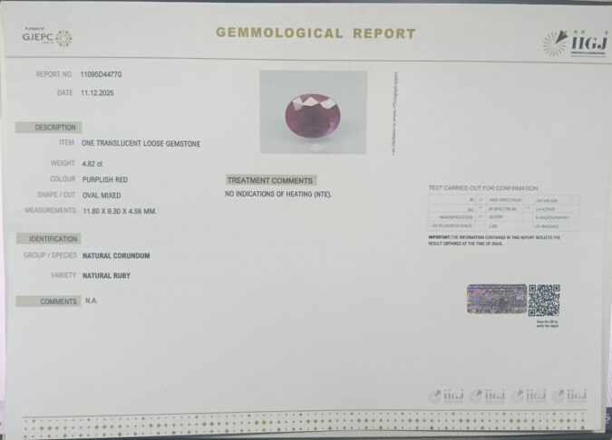Beautiful 4.82 Cts Natural Ruby (Top+-Mines) sva 5+ Ratti RUBY. Free Horoscope & Free Pundit Ji Astrological Advise / Consultation. Original Natural Lab certified gems by IGI GTL / Birth stones / Large Gem Selection of shree shubh Rashi Ratan Vedic dhan at Gem Mines. May Bhagwan Brahma, Vishnu, Shiv & Universe bless you.