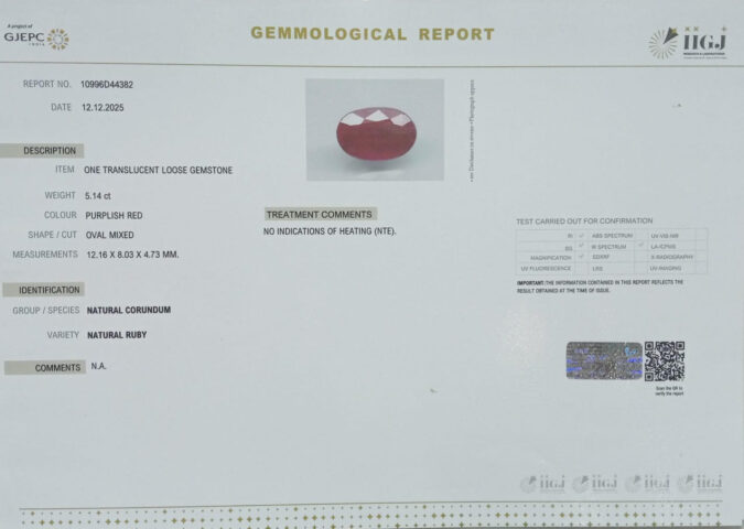 Beautiful 5.14 Cts Natural Ruby (Top-Mines) sva 5+ Ratti RUBY. Free Horoscope & Free Pundit Ji Astrological Advise / Consultation. Original Natural Lab certified gems by IGI GTL / Birth stones / Large Gem Selection of shree shubh Rashi Ratan Vedic dhan at Gem Mines. May Bhagwan Brahma, Vishnu, Shiv & Universe bless you.