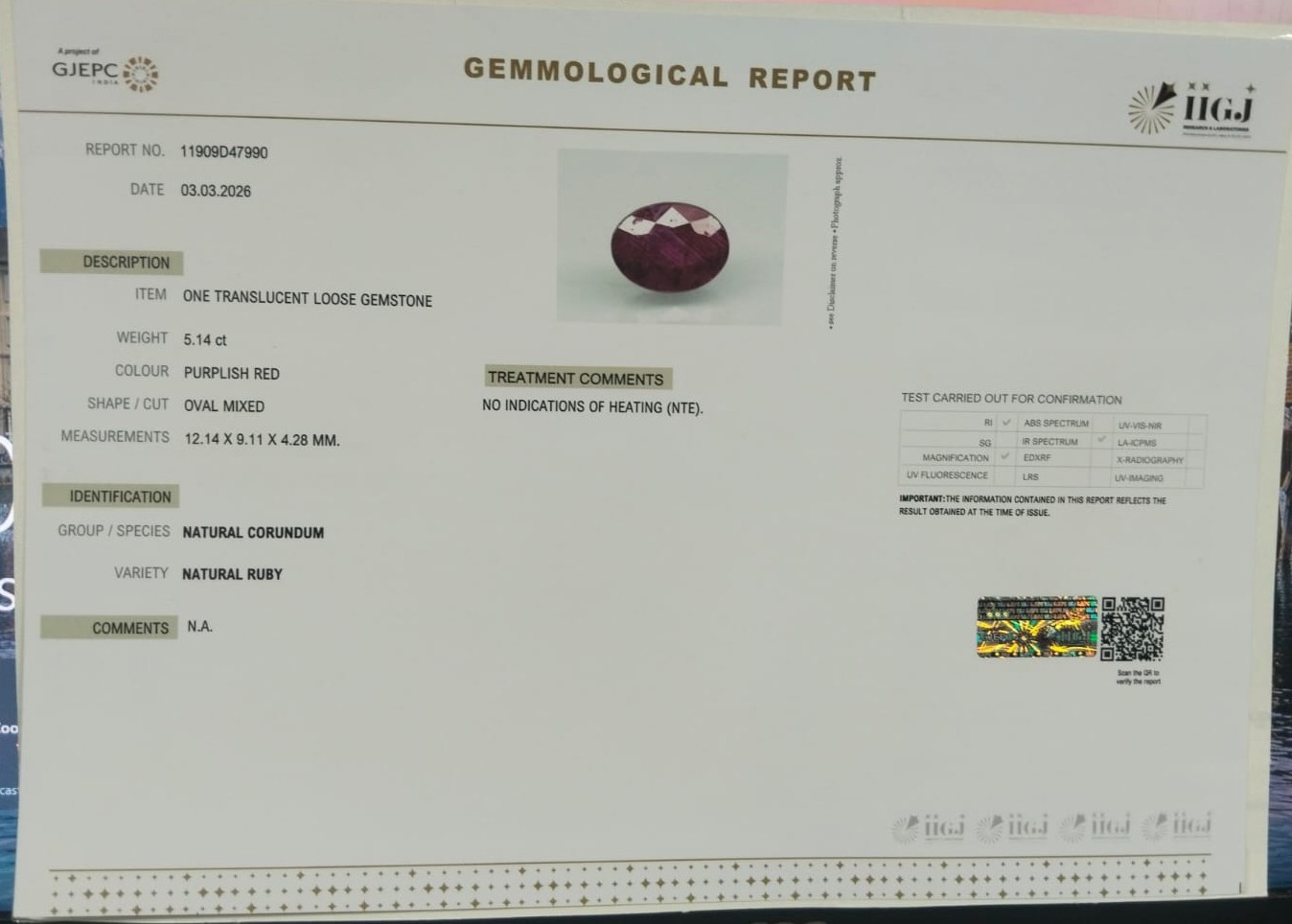 RUBY 5.14 Ct.
