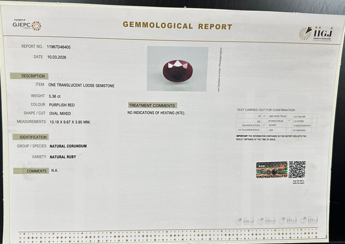 Beautiful 5.36 Cts Natural Ruby (AAA+-Mines) sva 5+ Ratti RUBY. Free Horoscope & Free Pundit Ji Astrological Advise / Consultation. Original Natural Lab certified gems by IGI GTL / Birth stones / Large Gem Selection of shree shubh Rashi Ratan Vedic dhan at Gem Mines. May Bhagwan Brahma, Vishnu, Shiv & Universe bless you.