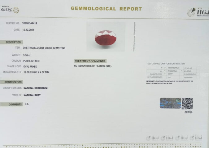 Beautiful 5.58 Cts Natural Ruby (Top+-Mines) sva 6+ Ratti RUBY. Free Horoscope & Free Pundit Ji Astrological Advise / Consultation. Original Natural Lab certified gems by IGI GTL / Birth stones / Large Gem Selection of shree shubh Rashi Ratan Vedic dhan at Gem Mines. May Bhagwan Brahma, Vishnu, Shiv & Universe bless you.