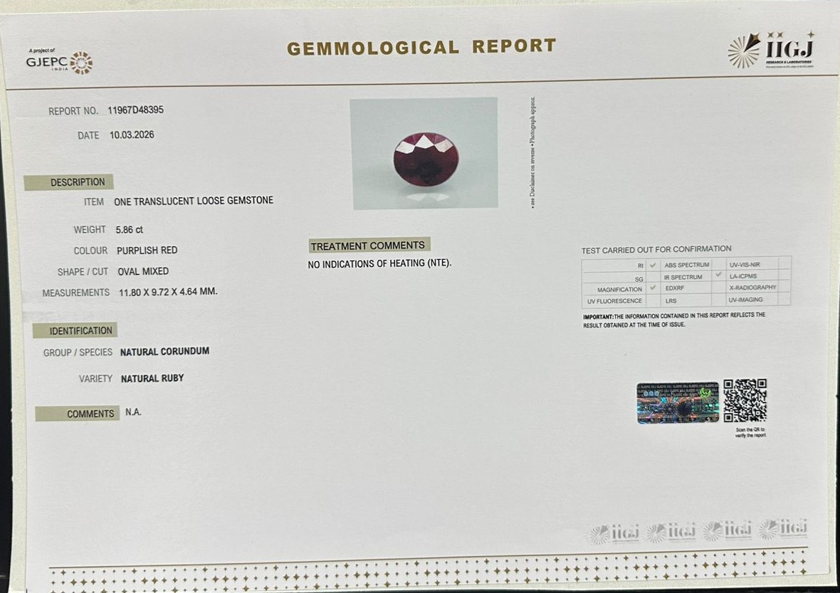 Beautiful 5.86 Cts Natural Ruby (AAA+-Mines) sva 6+ Ratti RUBY. Free Horoscope & Free Pundit Ji Astrological Advise / Consultation. Original Natural Lab certified gems by IGI GTL / Birth stones / Large Gem Selection of shree shubh Rashi Ratan Vedic dhan at Gem Mines. May Bhagwan Brahma, Vishnu, Shiv & Universe bless you.