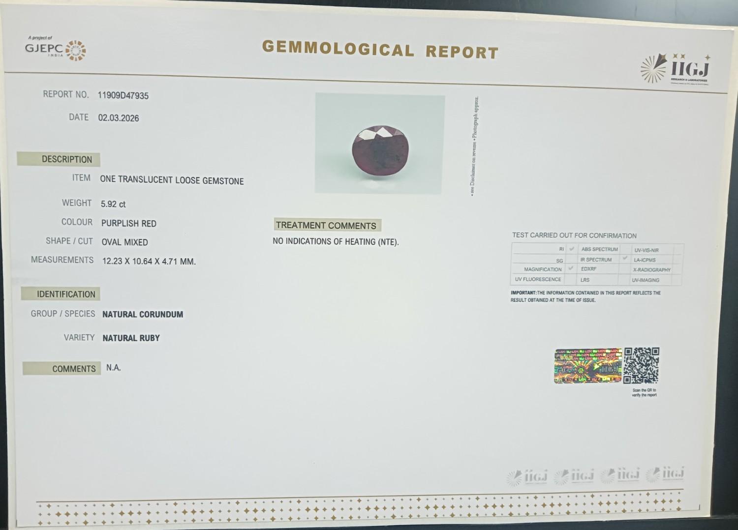 RUBY 5.92 Ct.