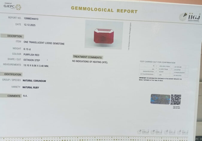 Beautiful 6.13 Cts Natural Ruby (Top-Mines) sva 6+ Ratti RUBY. Free Horoscope & Free Pundit Ji Astrological Advise / Consultation. Original Natural Lab certified gems by IGI GTL / Birth stones / Large Gem Selection of shree shubh Rashi Ratan Vedic dhan at Gem Mines. May Bhagwan Brahma, Vishnu, Shiv & Universe bless you.