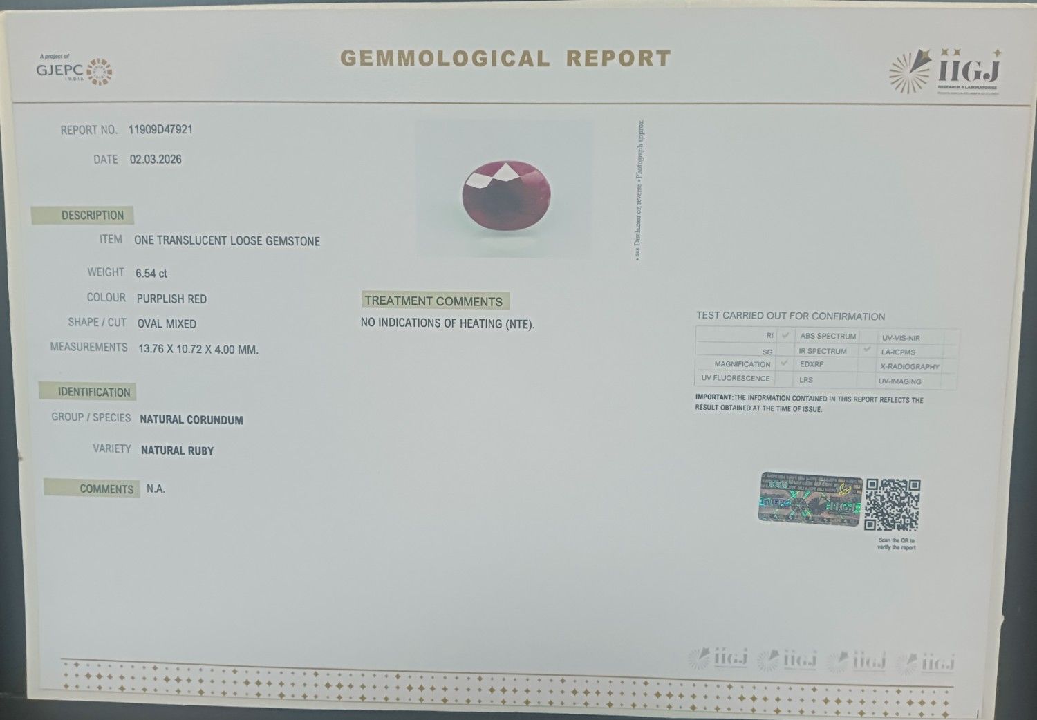 Beautiful 6.54 Cts Natural Ruby (AAA-Mines) sva 7+ Ratti RUBY. Free Horoscope & Free Pundit Ji Astrological Advise / Consultation. Original Natural Lab certified gems by IGI GTL / Birth stones / Large Gem Selection of shree shubh Rashi Ratan Vedic dhan at Gem Mines. May Bhagwan Brahma, Vishnu, Shiv & Universe bless you.