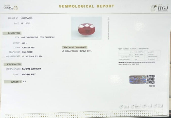 Beautiful 6.62 Cts Natural Ruby (Top-Mines) sva 7+ Ratti RUBY. Free Horoscope & Free Pundit Ji Astrological Advise / Consultation. Original Natural Lab certified gems by IGI GTL / Birth stones / Large Gem Selection of shree shubh Rashi Ratan Vedic dhan at Gem Mines. May Bhagwan Brahma, Vishnu, Shiv & Universe bless you.
