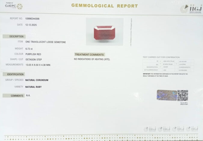 Beautiful 6.72 Cts Natural Ruby (Top-Mines) sva 7+ Ratti RUBY. Free Horoscope & Free Pundit Ji Astrological Advise / Consultation. Original Natural Lab certified gems by IGI GTL / Birth stones / Large Gem Selection of shree shubh Rashi Ratan Vedic dhan at Gem Mines. May Bhagwan Brahma, Vishnu, Shiv & Universe bless you.