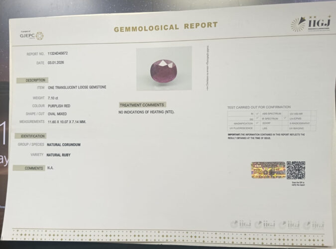 Beautiful 7.1 Cts Natural Ruby (Top+-Mines) sva 7+ Ratti RUBY. Free Horoscope & Free Pundit Ji Astrological Advise / Consultation. Original Natural Lab certified gems by IGI GTL / Birth stones / Large Gem Selection of shree shubh Rashi Ratan Vedic dhan at Gem Mines. May Bhagwan Brahma, Vishnu, Shiv & Universe bless you.
