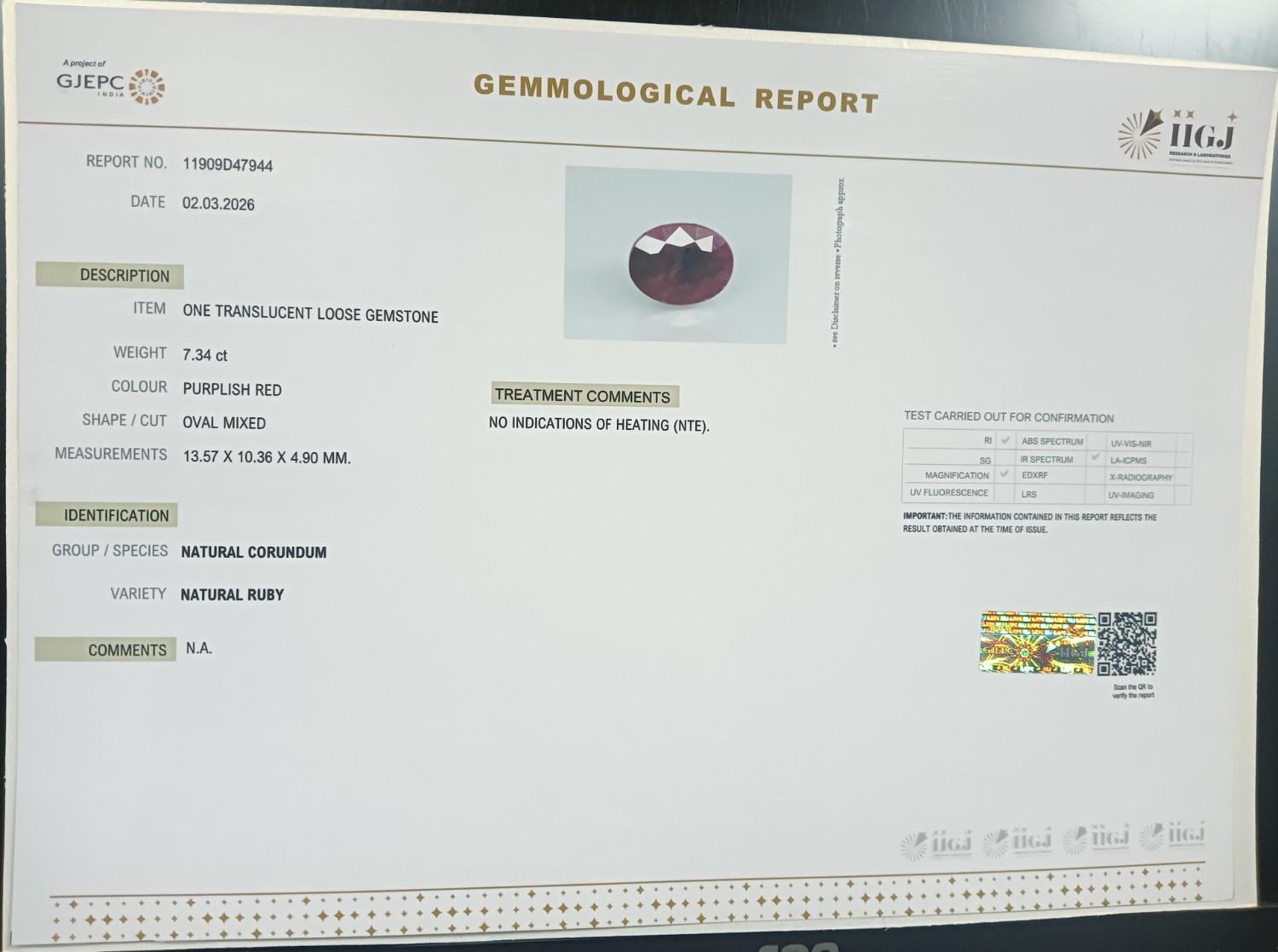 RUBY 7.34 Ct.