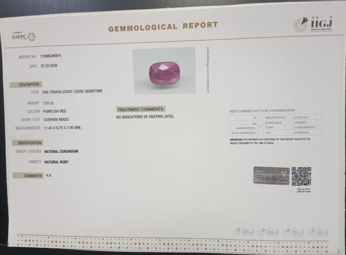 Beautiful 7.51 Cts Natural Ruby (Top-Mines) sva 8+ Ratti RUBY. Free Horoscope & Free Pundit Ji Astrological Advise / Consultation. Original Natural Lab certified gems by IGI GTL / Birth stones / Large Gem Selection of shree shubh Rashi Ratan Vedic dhan at Gem Mines. May Bhagwan Brahma, Vishnu, Shiv & Universe bless you.