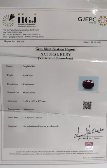 - 100% Certified Gems
