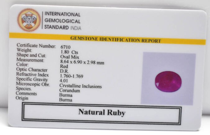 Certified Natural Ruby 1.8 Ct.(2+ Ratti) in Oval Mix shape
