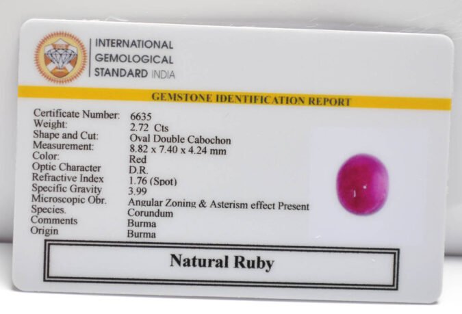 Beautiful 2.72 Cts Natural Ruby (AAA+-Mines) sva 3+ Ratti RUBY (BURMA MINES). Free Horoscope & Free Pundit Ji Astrological Advise / Consultation. Original Natural Lab certified gems by IGI GTL / Birth stones / Large Gem Selection of shree shubh Rashi Ratan Vedic dhan at Gem Mines. May Bhagwan Brahma, Vishnu, Shiv & Universe bless you.