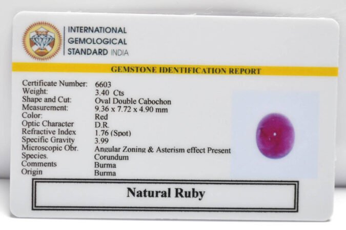 Certified Natural Ruby 3.4 Ct.(3+ Ratti) in Oval Double Cabochon shape