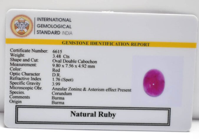 Certified Natural Ruby 3.48 Ct.(3+ Ratti) in Oval Double Cabochon shape