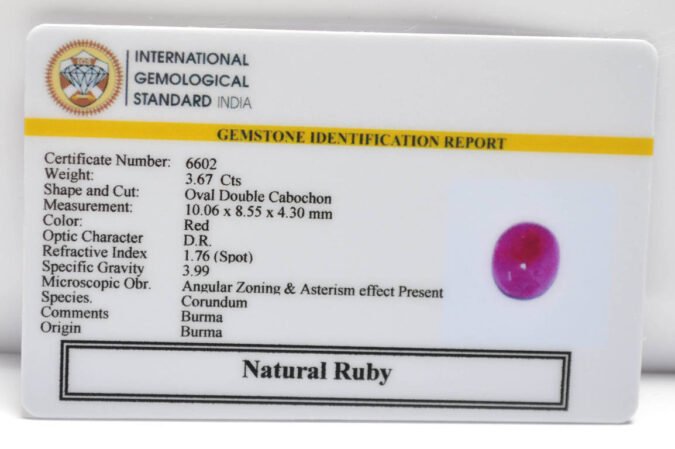 Certified Natural Ruby 3.67 Ct.(4+ Ratti) in Oval Double Cabochon shape