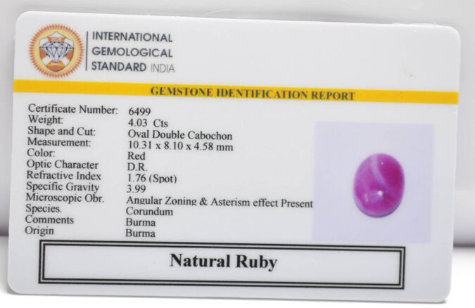 Beautiful 4.03 Cts Natural Ruby (Top-Mines) sva 4+ Ratti RUBY (BURMA MINES). Free Horoscope & Free Pundit Ji Astrological Advise / Consultation. Original Natural Lab certified gems by IGI GTL / Birth stones / Large Gem Selection of shree shubh Rashi Ratan Vedic dhan at Gem Mines. May Bhagwan Brahma, Vishnu, Shiv & Universe bless you.
