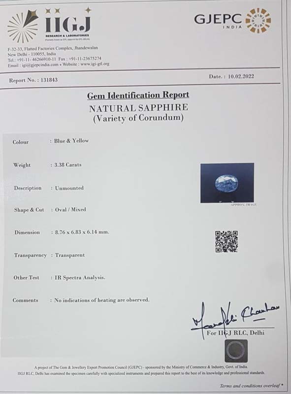 Beautiful 3.38 Ct. Sapphire (Ceylon(Sri-Lanka) Mines) Sava 3 Ratti Pukhraj. Free Horoscope & Free Pundit Ji Advise / Consultation. Original Natural Lab certified gems by IGI GTL / Birth stones / Large Gem Selection of shree shubh Rashi Ratan Vedic dhan at Gem Mines. May Bhagwan Brahma, Vishnu, Shiv & Universe bless you.