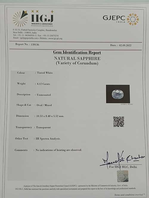 Beautiful 4.12 Ct. Sapphire (Pitambari Nilambari) (Ceylon Mines) Sava 4 Ratti Pukhraj. Free Horoscope & Free Pundit Ji Advise / Consultation. Original Natural Lab certified gems by IGI GTL / Birth stones / Large Gem Selection of shree shubh Rashi Ratan Vedic dhan at Gem Mines. May Bhagwan Brahma, Vishnu, Shiv & Universe bless you.