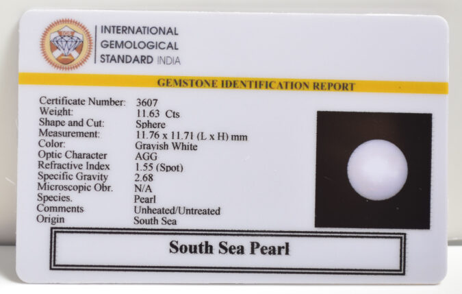 Certified South Sea Pearl 11.63 Ct.(12+ Ratti) in Sphere shape