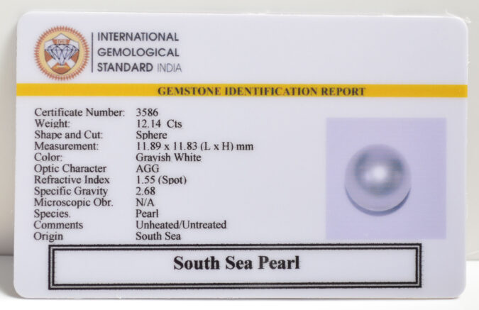 Beautiful 12.14 Cts South Sea Pearl (AAA+-Mines) sva 13+ Ratti SOUTH SEA PEARL. Free Horoscope & Free Pundit Ji Astrological Advise / Consultation. Original Natural Lab certified gems by IGI GTL / Birth stones / Large Gem Selection of shree shubh Rashi Ratan Vedic dhan at Gem Mines. May Bhagwan Brahma, Vishnu, Shiv & Universe bless you.
