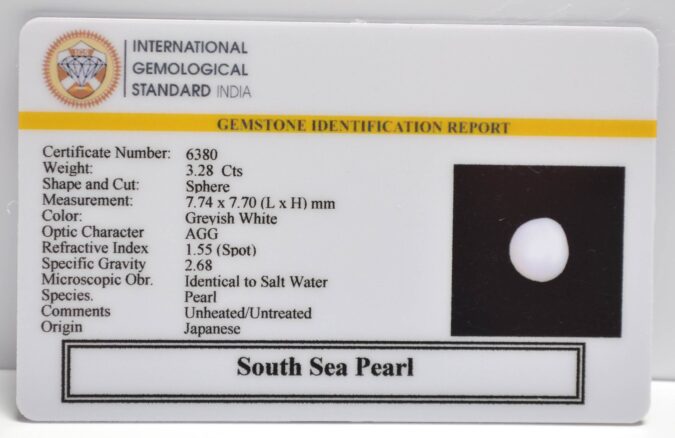 Certified South Sea Pearl 3.28 Ct.(3+ Ratti) in Sphere shape