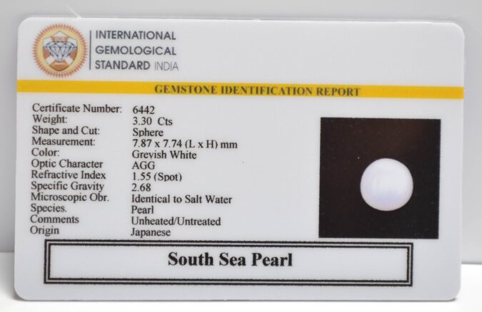 Certified South Sea Pearl 3.3 Ct.(3+ Ratti) in Sphere shape