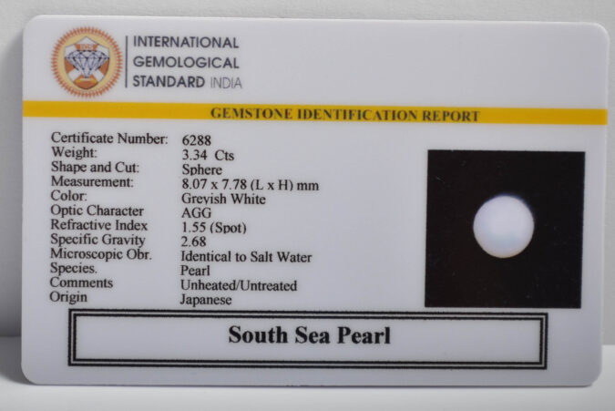 Certified South Sea Pearl 3.34 Ct.(3+ Ratti) in Sphere shape