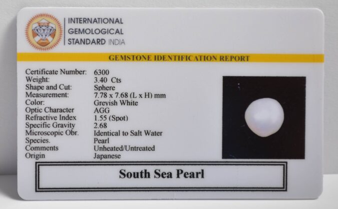 Certified South Sea Pearl 3.4 Ct.(3+ Ratti) in Sphere shape