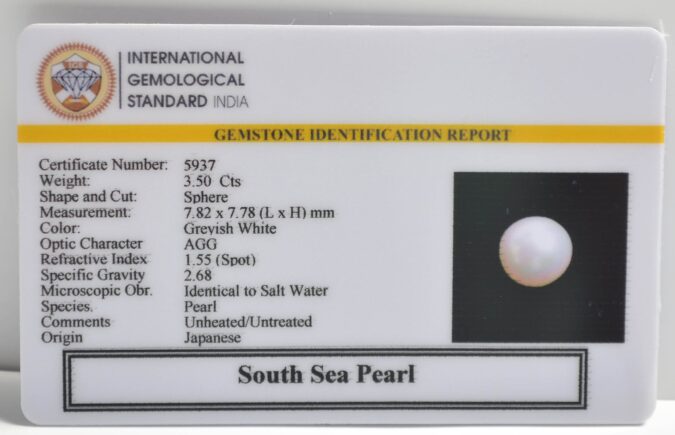 Certified South Sea Pearl 3.5 Ct.(3+ Ratti) in Sphere shape