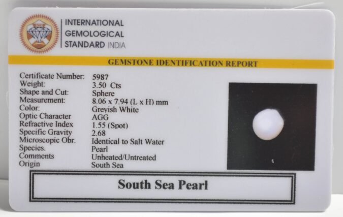 Beautiful 3.5 Cts South Sea Pearl (Top-Mines) sva 3+ Ratti SOUTH SEA PEARL. Free Horoscope & Free Pundit Ji Astrological Advise / Consultation. Original Natural Lab certified gems by IGI GTL / Birth stones / Large Gem Selection of shree shubh Rashi Ratan Vedic dhan at Gem Mines. May Bhagwan Brahma, Vishnu, Shiv & Universe bless you.