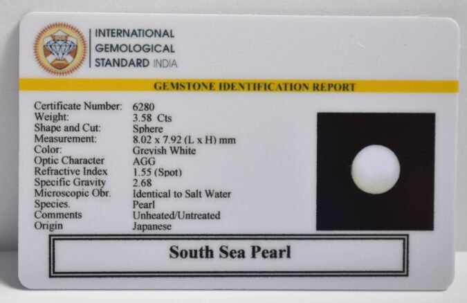 Certified South Sea Pearl 3.58 Ct.(3+ Ratti) in Sphere shape