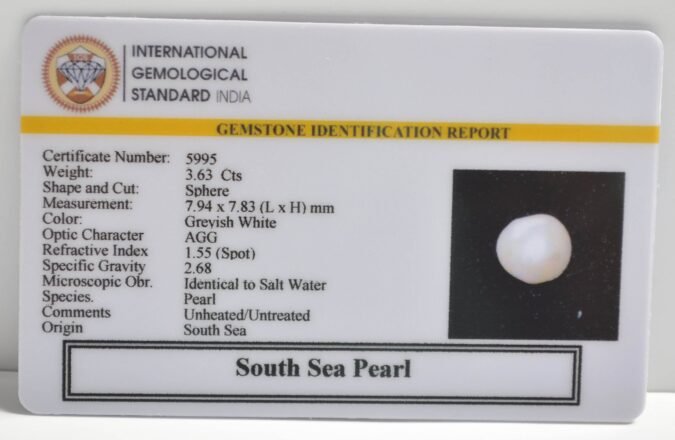 Beautiful 3.63 Cts South Sea Pearl (Top-Mines) sva 4+ Ratti SOUTH SEA PEARL. Free Horoscope & Free Pundit Ji Astrological Advise / Consultation. Original Natural Lab certified gems by IGI GTL / Birth stones / Large Gem Selection of shree shubh Rashi Ratan Vedic dhan at Gem Mines. May Bhagwan Brahma, Vishnu, Shiv & Universe bless you.