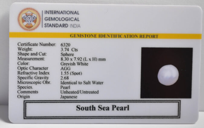 Beautiful 3.74 Cts South Sea Pearl (Top+-Mines) sva 4+ Ratti SOUTH SEA PEARL. Free Horoscope & Free Pundit Ji Astrological Advise / Consultation. Original Natural Lab certified gems by IGI GTL / Birth stones / Large Gem Selection of shree shubh Rashi Ratan Vedic dhan at Gem Mines. May Bhagwan Brahma, Vishnu, Shiv & Universe bless you.