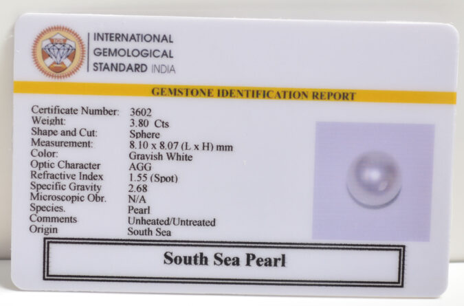 Beautiful 3.8 Cts South Sea Pearl (AAA+-Mines) sva 4+ Ratti SOUTH SEA PEARL. Free Horoscope & Free Pundit Ji Astrological Advise / Consultation. Original Natural Lab certified gems by IGI GTL / Birth stones / Large Gem Selection of shree shubh Rashi Ratan Vedic dhan at Gem Mines. May Bhagwan Brahma, Vishnu, Shiv & Universe bless you.