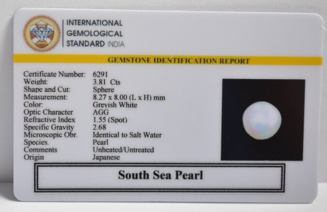 Beautiful 3.81 Cts South Sea Pearl (AAA+-Mines) sva 4+ Ratti SOUTH SEA PEARL. Free Horoscope & Free Pundit Ji Astrological Advise / Consultation. Original Natural Lab certified gems by IGI GTL / Birth stones / Large Gem Selection of shree shubh Rashi Ratan Vedic dhan at Gem Mines. May Bhagwan Brahma, Vishnu, Shiv & Universe bless you.