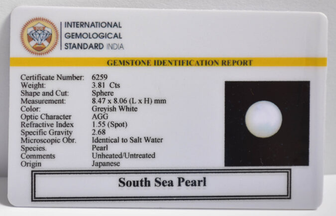 Beautiful 3.81 Cts South Sea Pearl (AAA+-Mines) sva 4+ Ratti SOUTH SEA PEARL. Free Horoscope & Free Pundit Ji Astrological Advise / Consultation. Original Natural Lab certified gems by IGI GTL / Birth stones / Large Gem Selection of shree shubh Rashi Ratan Vedic dhan at Gem Mines. May Bhagwan Brahma, Vishnu, Shiv & Universe bless you.