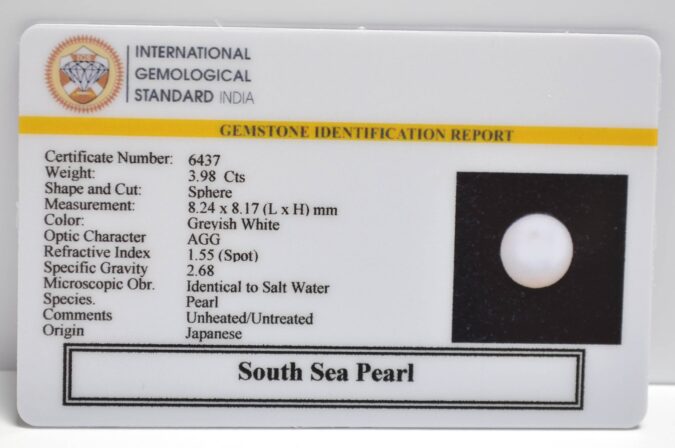 Beautiful 3.98 Cts South Sea Pearl (AAA+-Mines) sva 4+ Ratti SOUTH SEA PEARL. Free Horoscope & Free Pundit Ji Astrological Advise / Consultation. Original Natural Lab certified gems by IGI GTL / Birth stones / Large Gem Selection of shree shubh Rashi Ratan Vedic dhan at Gem Mines. May Bhagwan Brahma, Vishnu, Shiv & Universe bless you.