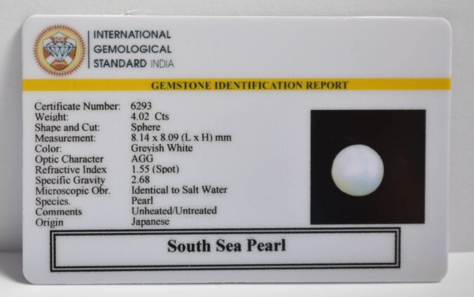 Certified South Sea Pearl 4.02 Ct.(4+ Ratti) in Sphere shape