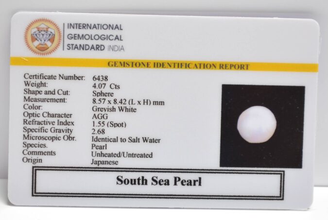 Beautiful 4.07 Cts South Sea Pearl (AAA+-Mines) sva 4+ Ratti SOUTH SEA PEARL. Free Horoscope & Free Pundit Ji Astrological Advise / Consultation. Original Natural Lab certified gems by IGI GTL / Birth stones / Large Gem Selection of shree shubh Rashi Ratan Vedic dhan at Gem Mines. May Bhagwan Brahma, Vishnu, Shiv & Universe bless you.
