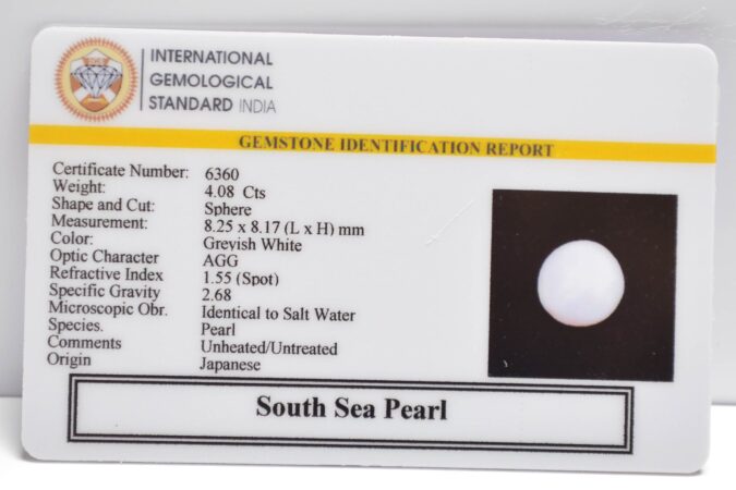 Beautiful 4.08 Cts South Sea Pearl (AAA+-Mines) sva 4+ Ratti SOUTH SEA PEARL. Free Horoscope & Free Pundit Ji Astrological Advise / Consultation. Original Natural Lab certified gems by IGI GTL / Birth stones / Large Gem Selection of shree shubh Rashi Ratan Vedic dhan at Gem Mines. May Bhagwan Brahma, Vishnu, Shiv & Universe bless you.