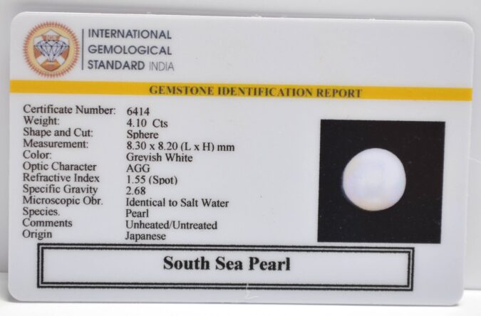 Beautiful 4.1 Cts South Sea Pearl (AAA+-Mines) sva 4+ Ratti SOUTH SEA PEARL. Free Horoscope & Free Pundit Ji Astrological Advise / Consultation. Original Natural Lab certified gems by IGI GTL / Birth stones / Large Gem Selection of shree shubh Rashi Ratan Vedic dhan at Gem Mines. May Bhagwan Brahma, Vishnu, Shiv & Universe bless you.